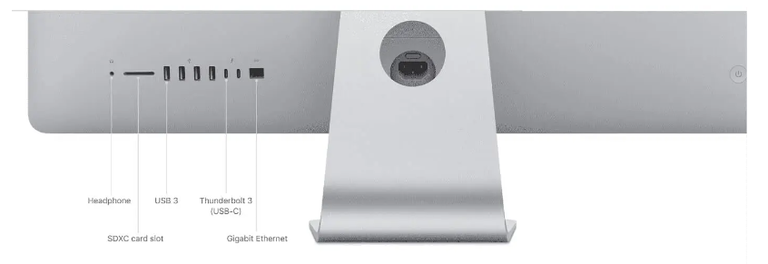 Tất cả các mẫu iMac 2019 đều sử dụng thiết kế này, với một phích cắm duy nhất ở phía sau để cấp nguồn và các cổng ở phía sau để kết nối các phụ kiện.