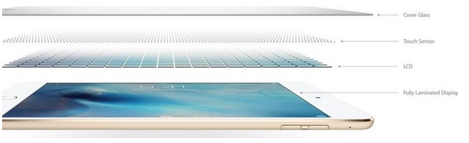 Công nghệ một lớp màn hình được Apple sử dụng trên iPad mini 4, nhờ đó thân máy mỏng hơn, đem đến chất lượng hình ảnh sắc nét hơn, độ sáng cao và chống lóa tốt.