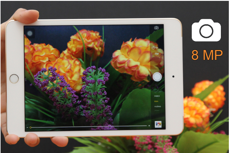 Được cải tiến camera 8MP so với thế hệ trước, ảnh chụp của iPad Mini 4 cho chất lượng cao hơn hẳn, hỗ trợ chụp ảnh HDR, quay video Slow Motion và chụp liên tục.