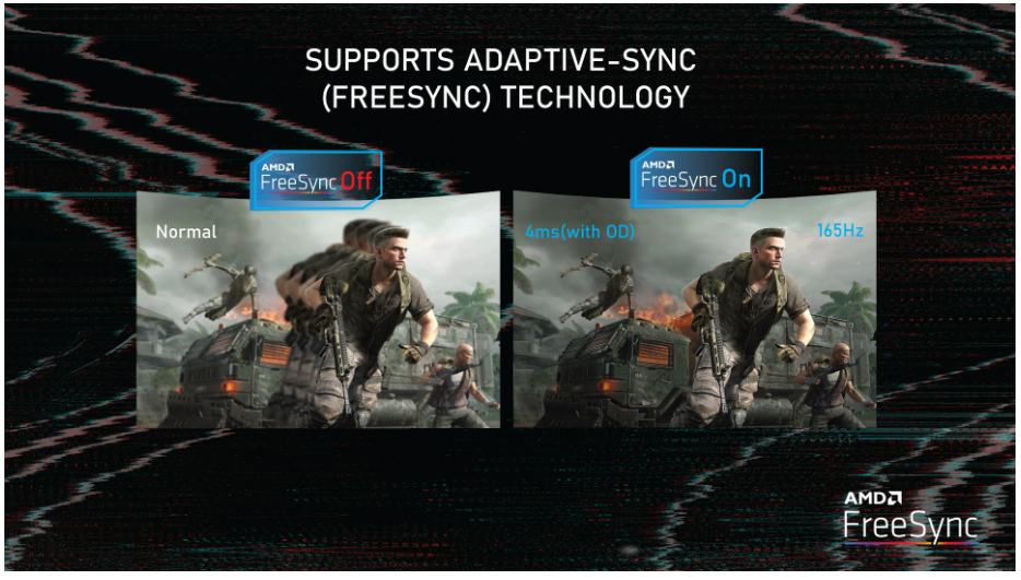 E-ROG series có tốc độ làm mới 165Hz* nhanh và thời gian phản hồi 0,4 ms (GTG) với tính năng Adpter sync Compatible để loại bỏ bóng mờ và mang lại trải nghiệm chơi game liền mạch, không bị xé hình.