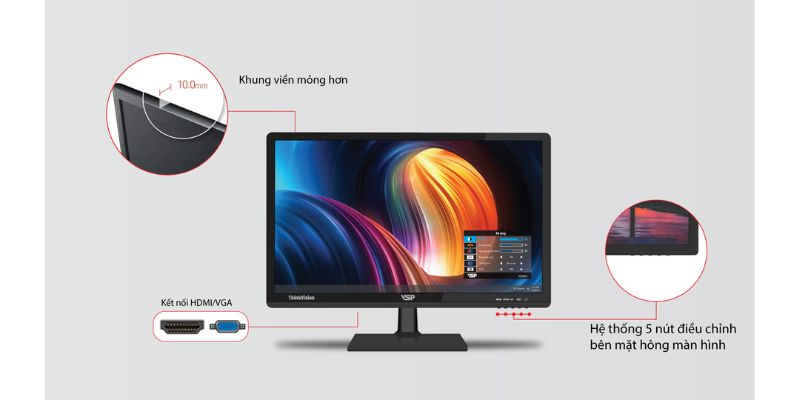 Màn hình LED Monitor VSP với thiết kế tinh giản, phù hợp cho nhu cầu học tập, làm việc văn phòng và các nhu cầu đa phương tiện giải trí của bạn. Góc nhìn tiêu chuẩn kèm Full HD khung hình 16:9 với độ phân giải 1920×1080 Pixels @60Hz cho phép hiển thị hình ảnh rỏ nét và tương thích với các chuẩn HDTV.
