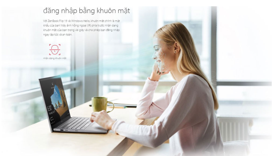 Với camera trên zenbook q508ug kết hợp Windows Hello, khuôn mặt chính là mật khẩu của bạn. Máy ảnh hồng ngoại (IR) phía trước nhận dạng khuôn mặt của bạn trong vài giây và cho phép bạn đăng nhập ngay lập tức và cực an toàn.