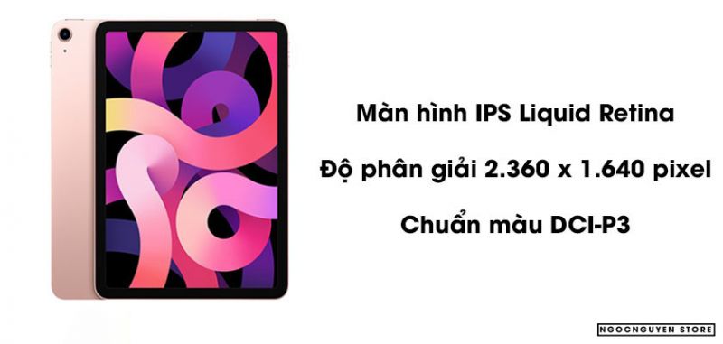 Về màn hình, iPad Air 10.9 2020 mới sở hữu màn hình IPS Liquid Retina với kích thước 10.9 inch. Độ phân giải của màn hình 2.360 x 1.640 pixel, mật độ điểm ảnh 264 ppi mang đến chất lượng ảnh vượt trội. Người dùng sẽ cảm nhận được hình ảnh sống động, màu sắc chân thật nhất.