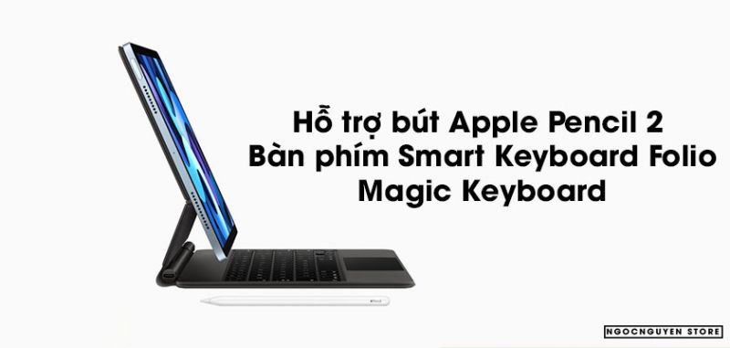 iPad Air hỗ trợ bút Apple Pencil 2 cùng với đó là phụ kiện bàn phím Smart Keyboard Folio và Magic Keyboard phiên bản iPad Pro 11 (2020).