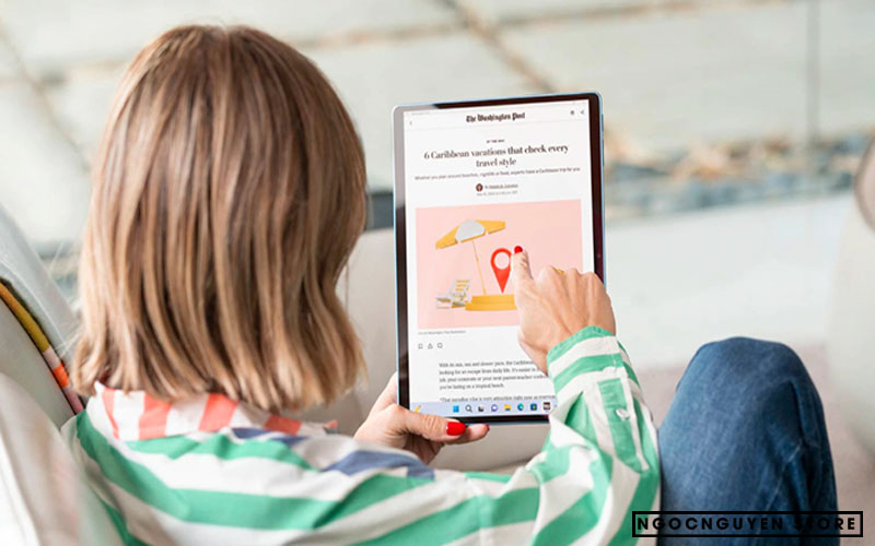 Màn hình lớn 13inch PixelSense tràn viền mang đến tầm nhìn thoáng mãn nhãn, hỗ trợ cảm ứng đa điểm để thao tác thuận tiện hơn.