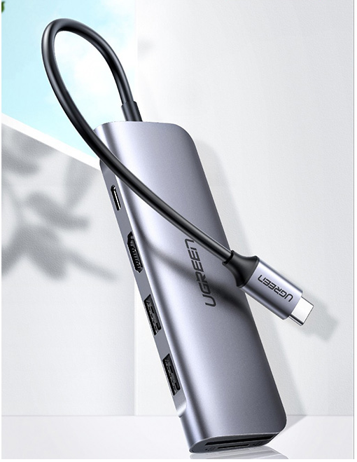 Bộ chuyển đổi Ugreen 70411 USB Type C sang HDMI, USB 3.0, đọc thẻ SD/TF, hỗ trợ sạc USB C